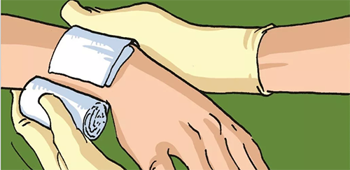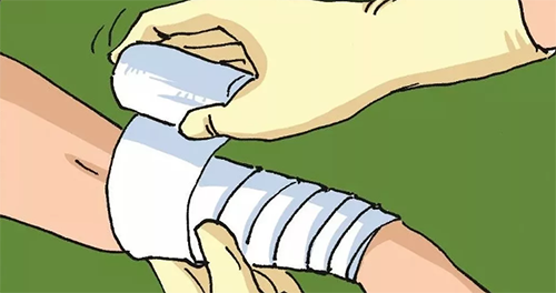 ·包扎开始和收尾时,要重复缠绕一圈做固定。